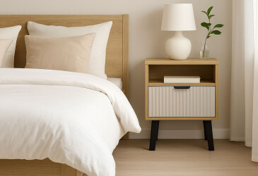 - super-cena, dřevotříska, laminovaná, béžový písek / skandinávský smrk, volně stojící, kuličková vedení plného výsuvu, s police a zásuvky, dřevotříska, skandinávský styl.