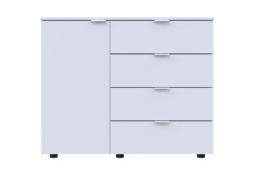 - super-cena, skladem, dřevotříska, laminovaná, s dvířky, bílá, kuličková vedení plného výsuvu, 4 zásuvky, dřevotříska, moderní styl.