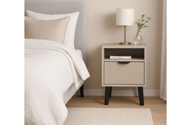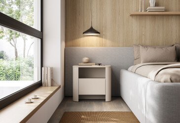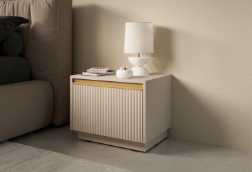- super-cena, MDF, laminovaná, béžový, volně stojící, kuličková vedení plného výsuvu, s dvířky, dřevotříska, styl minimalismus.