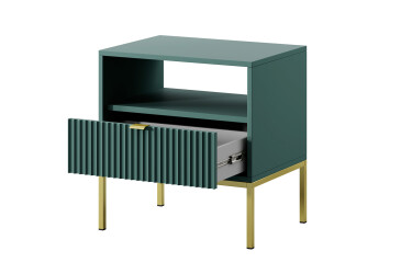 - super-cena, MDF, matná, zlatý / zelený, volně stojící, kuličková vedení plného výsuvu, s police a zásuvky, dřevotříska, skandinávský styl.