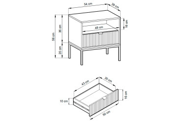 - super-cena, MDF, matná, zlatý / černý, volně stojící, kuličková vedení plného výsuvu, s police a zásuvky, dřevotříska, skandinávský styl.