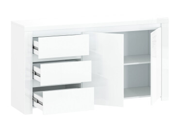 - akce, skladem, MDF, lesklá, s dvířky, bílý lesk, kuličková vedení plného výsuvu, 3 zásuvky, dřevotříska, moderní styl.