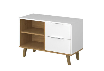 - top, skladem, dřevotříska, laminovaná, se zásuvkami, s policemi, bílá / dub kamenný, kuličková vedení plného výsuvu, 2 zásuvky, dřevotříska, skandinávský styl.