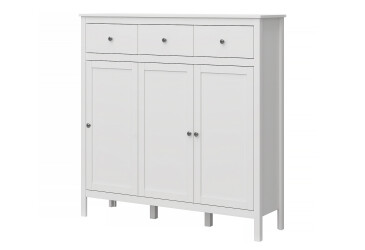 - akce, skladem, MDF, matná, s dvířky, bílá, kuličková vedení plného výsuvu, 3 zásuvky, dřevotříska, skandinávský styl.