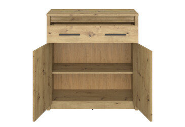 - akce, dřevotříska, laminovaná, s dvířky, dub artisan, kuličková vedení plného výsuvu, 1 zásuvka, dřevotříska, skandinávský styl.