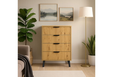 - super-cena, dřevotříska, laminovaná, se zásuvkami, dub artisan / kašmír, kuličková vedení plného výsuvu, 4 zásuvky, dřevotříska, moderní.