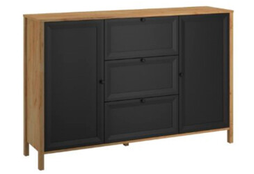 - super-cena, skladem, MDF, matná, s dvířky, dub craft zlatý / černý, kuličková vedení plného výsuvu, 3 zásuvky, dřevotříska, moderní styl.