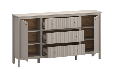- super-cena, skladem, MDF, laminovaná, se zásuvkami, s dvířky, taupe, kuličková vedení plného výsuvu, 3 zásuvky, dřevotříska, moderní styl.