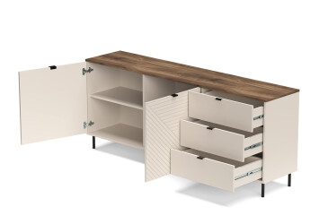 - super-cena, skladem, MDF, laminovaná, s dvířky, se zásuvkami, kašmír / dub castello, kuličková vedení plného výsuvu, 3 zásuvky, dřevotříska, moderní styl.