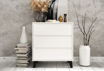 - super-cena, dřevotříska, laminovaná, se zásuvkami, bílá, kuličková vedení plného výsuvu, 3 zásuvky, dřevotříska, moderní styl.