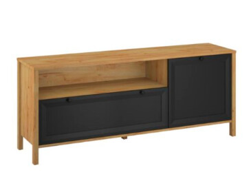 - super-cena, dřevotříska + MDF, možnost osvětlení, laminovaná, s dvířky, dub wotan, 3 zásuvky, dřevotříska, venkovský styl.