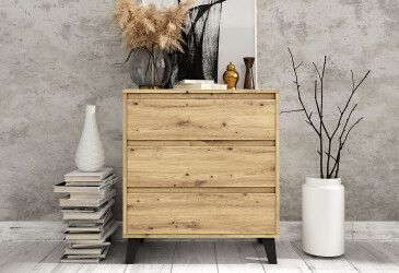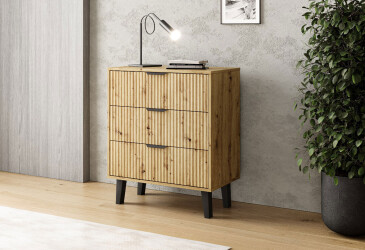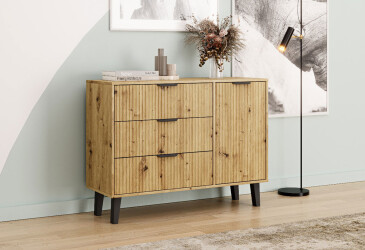 - super-cena, MDF, laminovaná, se zásuvkami, s dvířky, dub artisan, kuličková vedení plného výsuvu, 3 zásuvky, dřevotříska, moderní styl.
