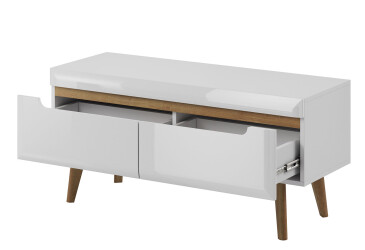 - super-cena, MDF, lesklá, bílý lesk, volně stojící, kuličková vedení plného výsuvu, dřevotříska, s dvířky, moderní styl.