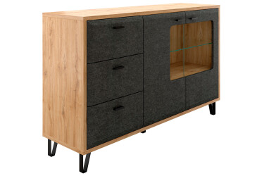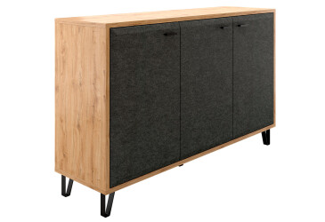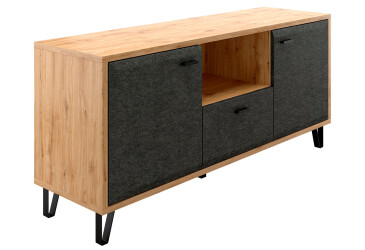 - super-cena, MDF, laminovaná, dub navarra / grafit, volně stojící, kuličková vedení plného výsuvu, dřevotříska, s policemi, se zásuvkami, s dvířky, loft.