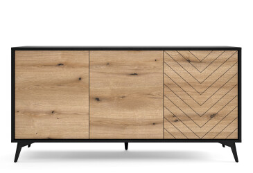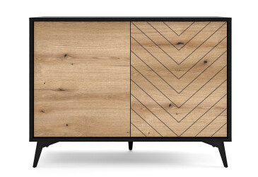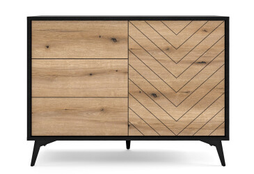 - super-cena, dřevotříska, laminovaná, s dvířky, evoke dub / černá, kuličková vedení plného výsuvu, 3 zásuvky, dřevotříska, skandinávský styl.