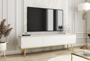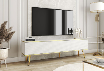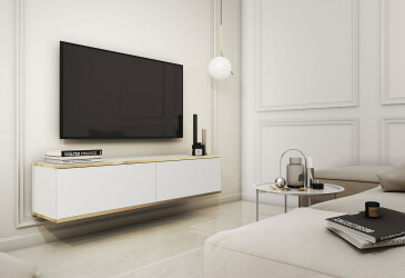 - super-cena, MDF, matná, zlatý kov / bílá, volně stojící, dřevotříska, s dvířky, moderní styl.