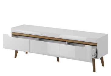 - super-cena, MDF, lesklá, bílý lesk, volně stojící, kuličková vedení plného výsuvu, dřevotříska, s dvířky, moderní styl.