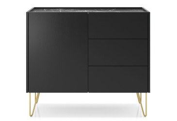 - super-cena, dřevotříska, matná, s dvířky, černý, kuličková vedení plného výsuvu, 3 zásuvky, dřevotříska, loft.