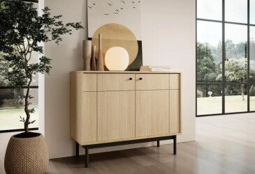 - super-cena, frézovaný DSP, laminovaná, s dvířky, dub linea, dřevotříska, moderní styl.