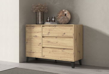 - super-cena, dřevotříska, laminovaná, s dvířky, dub artisan, kuličková vedení plného výsuvu, 3 zásuvky, dřevotříska, skandinávský styl.