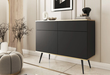 - super-cena, dřevotříska, matná, se zásuvkami, s dvířky, černý, kuličková vedení plného výsuvu, 2 zásuvky, dřevotříska, moderní styl.