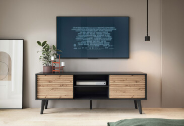 - super-cena, dřevotříska, laminovaná, dub artisan / černý, volně stojící, rolovací vedení, dřevotříska, s policemi, s dvířky, skandinávský styl.
