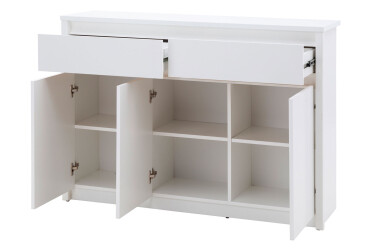 - akce, MDF, pokrytý fólií, s dvířky, bílý mat, kuličková vedení plného výsuvu, dřevotříska, skandinávský styl.