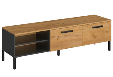 - super-cena, MDF, laminovaná, s dvířky, dub navarra / grafit, kuličková vedení plného výsuvu, 1 zásuvka, dřevotříska, loft.