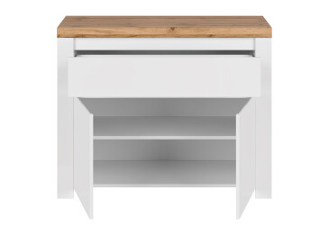 - akce, skladem, MDF, lesklá, s dvířky, bílý lesk / dyb wotan, kuličková vedení plného výsuvu, 1 zásuvka, dřevotříska, venkovský styl.