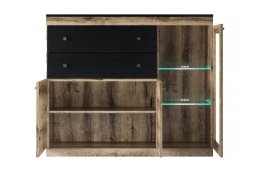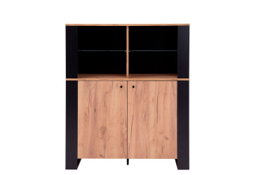 - akce, dřevotříska, možnost osvětlení, laminovaná, vitrína, s dvířky, dub monastery / černý, kuličková vedení plného výsuvu, 1 zásuvka, dřevotříska, moderní styl.