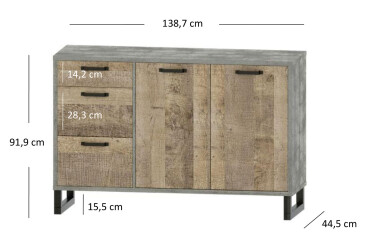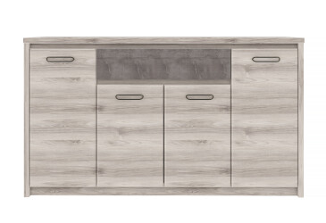 - akce, dřevotříska, laminovaná, s dvířky, šedá / dub pískový, kuličková vedení plného výsuvu, 3 zásuvky, dřevotříska, loft.