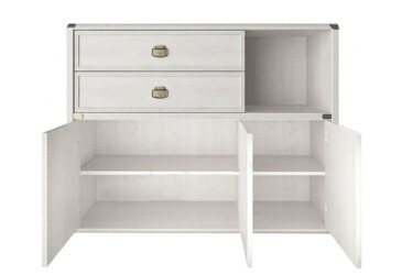 - akce, dřevotříska + MDF, laminovaná, se zásuvkami, borovice vintage, kuličková vedení plného výsuvu, 4 zásuvky, dřevotříska, venkovský styl.