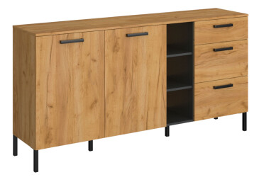 - akce, skladem, dřevotříska, laminovaná, s dvířky, dub kraft zlatý / antracit, kuličková vedení plného výsuvu, 3 zásuvky, dřevotříska, loft.