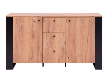 - super-cena, skladem, MDF, matná, s dvířky, dub craft zlatý / černý, kuličková vedení plného výsuvu, 3 zásuvky, dřevotříska, moderní styl.