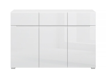 - akce, skladem, MDF, lesklá, s dvířky, bílý lesk, kuličková vedení plného výsuvu, 3 zásuvky, dřevotříska, hi-tech styl.