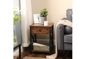 - dřevotříska, se zásuvky, s poličkou, laminovaná, černá / rustikální hnědá, kov, loft.