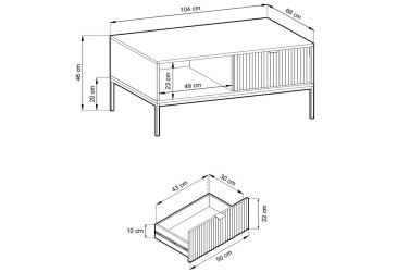 • modulární stolky jsou vhodné pro kompaktní obývací pokoje a obvykle mají 60 cm.