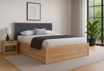 - top, skladem, 140x200 cm, 2 místa pro spaní, dřevotříska + MDF, laminovaná, patinovaná, dub navarra, s úložným prostorem, s roštem, dřevotříska, moderní styl.