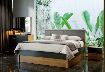 - super-cena, 180x200 cm, 2 místa pro spaní, dřevotříska, lesklá, laminovaná, dub artisan / tmavě šedá, s úložným prostorem, bez roštu , dřevotříska, moderní.