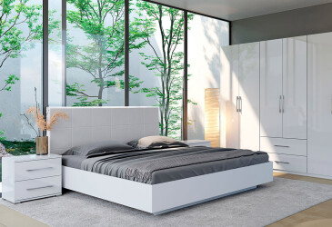 - super-cena, 140x200 cm, 2 místa pro spaní, dřevotříska, lesklá, laminovaná, bílý lesk, bez úložného prostoru, bez roštu , dřevotříska, moderní.