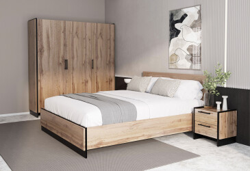 - akce, 160x200 cm, 2 místa pro spaní, dřevotříska, laminovaná, dub navarra, bez úložného prostoru, bez roštu , dřevotříska, venkovský styl.