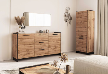 - super-cena, dřevotříska + MDF, laminovaná, patinovaná, kuličková vedení plného výsuvu, dřevotříska, moderní styl.
