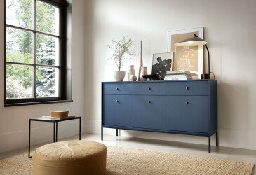 - super-cena, dřevotříska, laminovaná, plná dvířka, kuličková vedení plného výsuvu, dřevotříska, skandinávský styl.