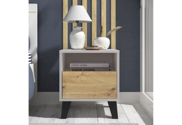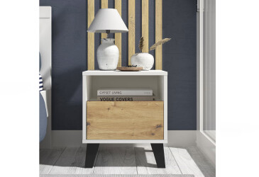 - novinka, dřevotříska, laminovaná, dub artisan / bílá, volně stojící, kuličková vedení plného výsuvu, s police a zásuvky, dřevotříska, moderní styl.