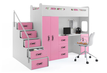 Patrová postel Max 3 bílé / růžový 80x200 / 120x200 + zásuvka, s roštem, matrací