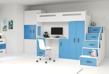 Patrová postel Max 3 bílé / modrý 80x200 / 120x200 + zásuvka, s roštem, matrací