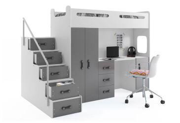 Patrová postel Max 3 bílé / grafit 80x200 / 120x200 + zásuvka, s roštem, matrací