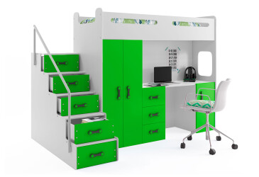 Patrová postel Max 3 bílé / zelený 80x200 / 120x200 + zásuvka, s roštem, matrací