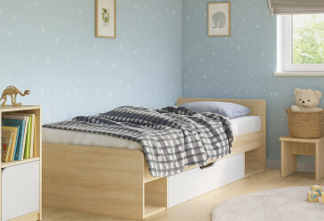 - akce, top, skladem, 90x200 cm, 1 místo pro spaní, dřevotříska, laminovaná, dub sonoma / bílý, s úložným prostorem, bez roštu , dřevotříska, moderní styl.