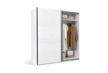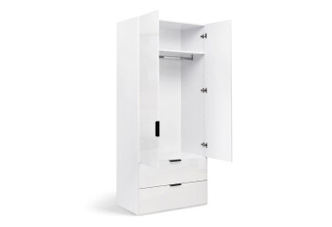- novinka, dřevotříska, laminovaná, lesklá, bílý lesk, kuličková vedení plného výsuvu, dřevotříska, tyč a zásuvky.